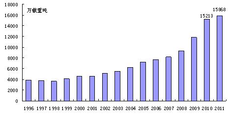 圖2. 1996-2011年世界新船完工量情況