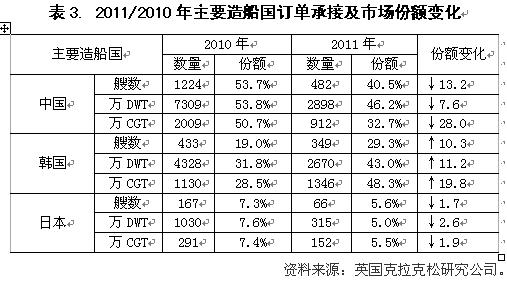 一、從“總量變化”看2011年世界造船市場