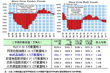 注:上述二手船估值以波羅的海航運(yùn)公會(huì)對(duì)船齡不超過(guò)5年的油輪/散貨船估價(jià)作為參考依據(jù)。