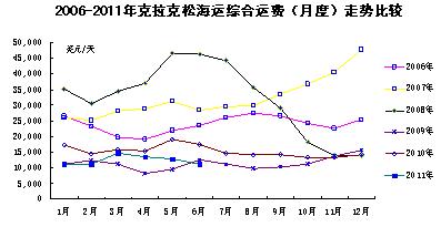 國(guó)際航運(yùn)市場(chǎng)整體上表現(xiàn)低迷,運(yùn)費(fèi)水平明顯低于上一年水平,個(gè)別月份甚至跌破2009年同期水平。