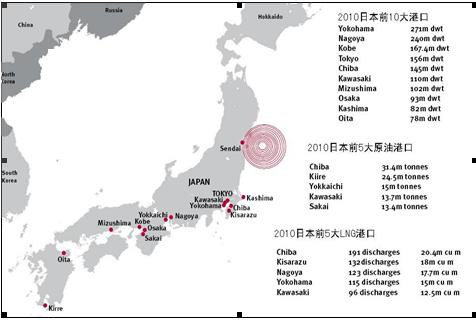 大地震發(fā)生后,日本立即關(guān)閉國內(nèi)所有港口,據(jù)英國勞氏統(tǒng)計(jì),當(dāng)日日本因港口關(guān)閉造成的損失達(dá)34億美元。日本港口主要分布在南部地區(qū)和東南部,多數(shù)港口離震區(qū)較遠(yuǎn),沒有受到直接沖擊。目前,我們只知道位于震區(qū)的仙臺(tái)港遭遇毀滅性破壞,盡管該港口是日本比較重要的集裝箱、原油港口,但是對(duì)整個(gè)日本港口運(yùn)營影響十分有限。