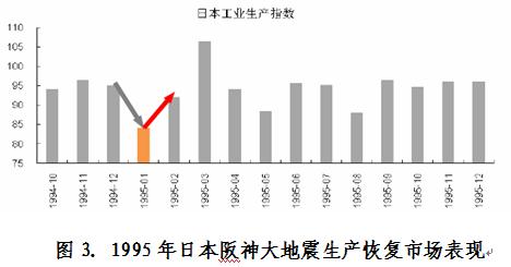 由此可見,無論是整個(gè)國家經(jīng)濟(jì)結(jié)構(gòu),災(zāi)害初評(píng)估,或受災(zāi)地區(qū)在國民經(jīng)濟(jì)中地位和對(duì)國民經(jīng)濟(jì)實(shí)際影響等角度,此次地震(海嘯)帶來的影響可能要弱于1995年阪神地震。同時(shí),大家知道1995年阪神地震對(duì)生產(chǎn)的實(shí)際影響也是短期的,震后生產(chǎn)恢復(fù)非常迅速,并且某種程度上有效帶動(dòng)本國經(jīng)濟(jì)繁榮。為此,我們認(rèn)為此次地震危害對(duì)日本工業(yè)生產(chǎn)帶來的沖擊總體上較為有限。