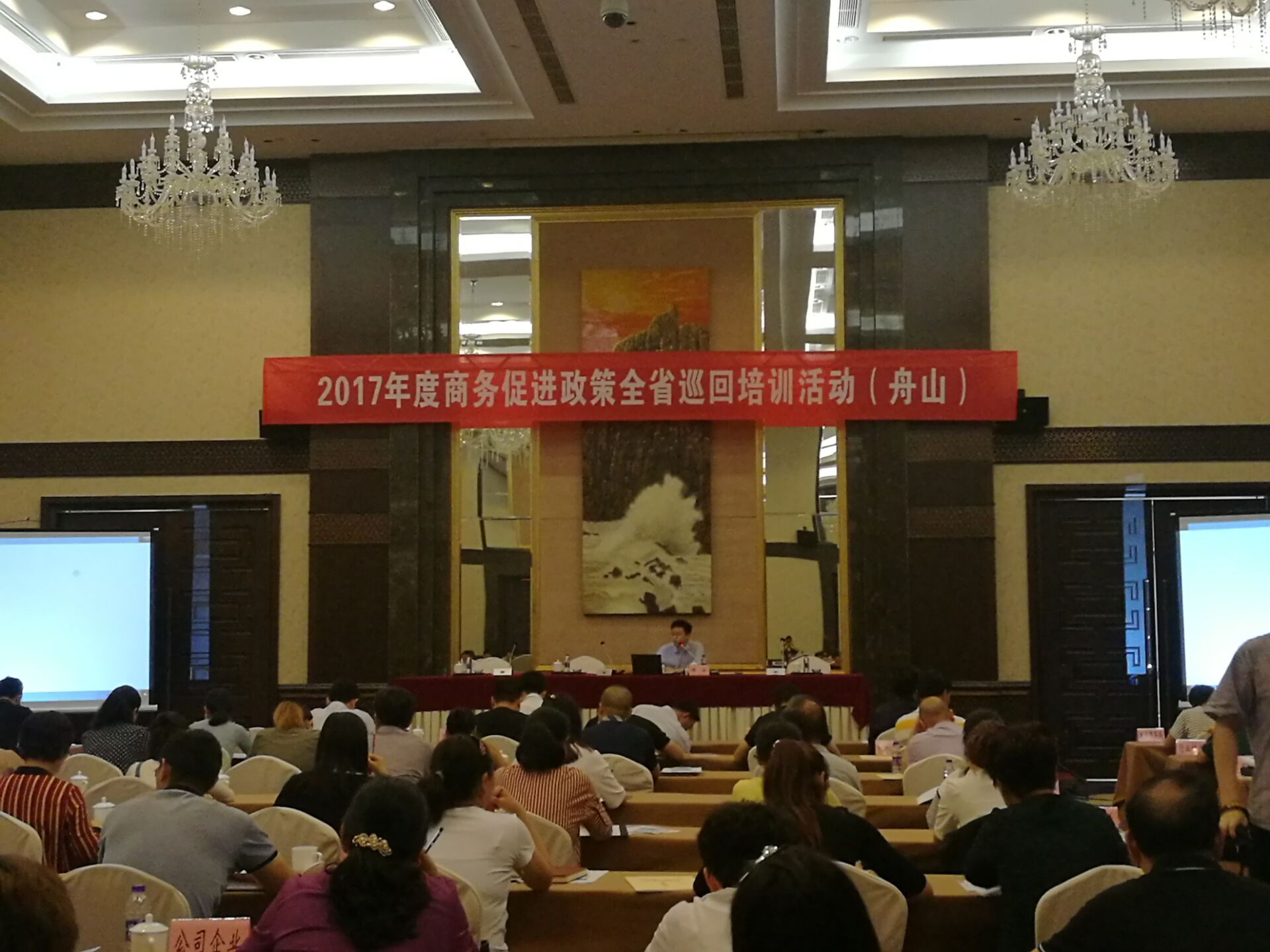 2017年商務(wù)促進(jìn)政策全省巡回培訓(xùn)活動,6月14日上午在新城財富大酒店3樓會議室舉行。全市各縣區(qū)的商務(wù)管理機關(guān)、行業(yè)協(xié)會、企事業(yè)單位共有一百人參加,會議由省商務(wù)廳財務(wù)處負(fù)責(zé)人主持。