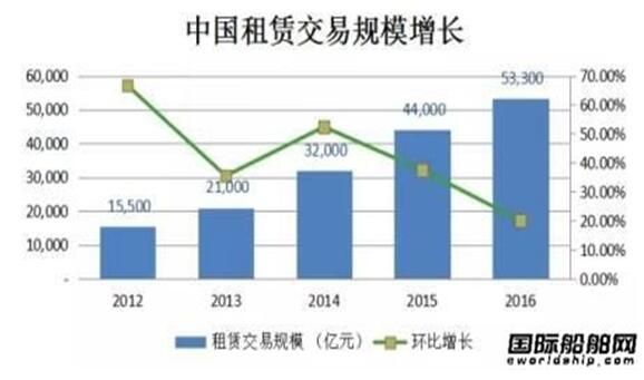 根據(jù)中國(guó)租賃聯(lián)盟發(fā)布的數(shù)據(jù),截至2016年底,我國(guó)融資租賃合同余額約53,300億元,年較2007年業(yè)務(wù)量增長(zhǎng)超過(guò)200倍,年均復(fù)合增長(zhǎng)率高達(dá)82.27%。